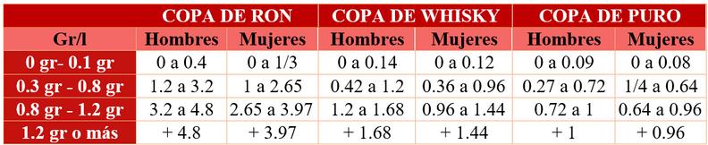 NIVEL DE ALCOHOL EN LA SANGRE SEGÚN BEBIDAS ALCOHÓLICAS