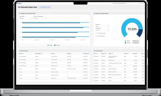 Ethos Finance is a fully integrated accounting system that simplifies your financial processes, ensuring you can operate quickly and precisely, improving your government’s performance and eliminating complexity. The system comes complete with configurable dashboards to measure key performance indicators (KPIs).