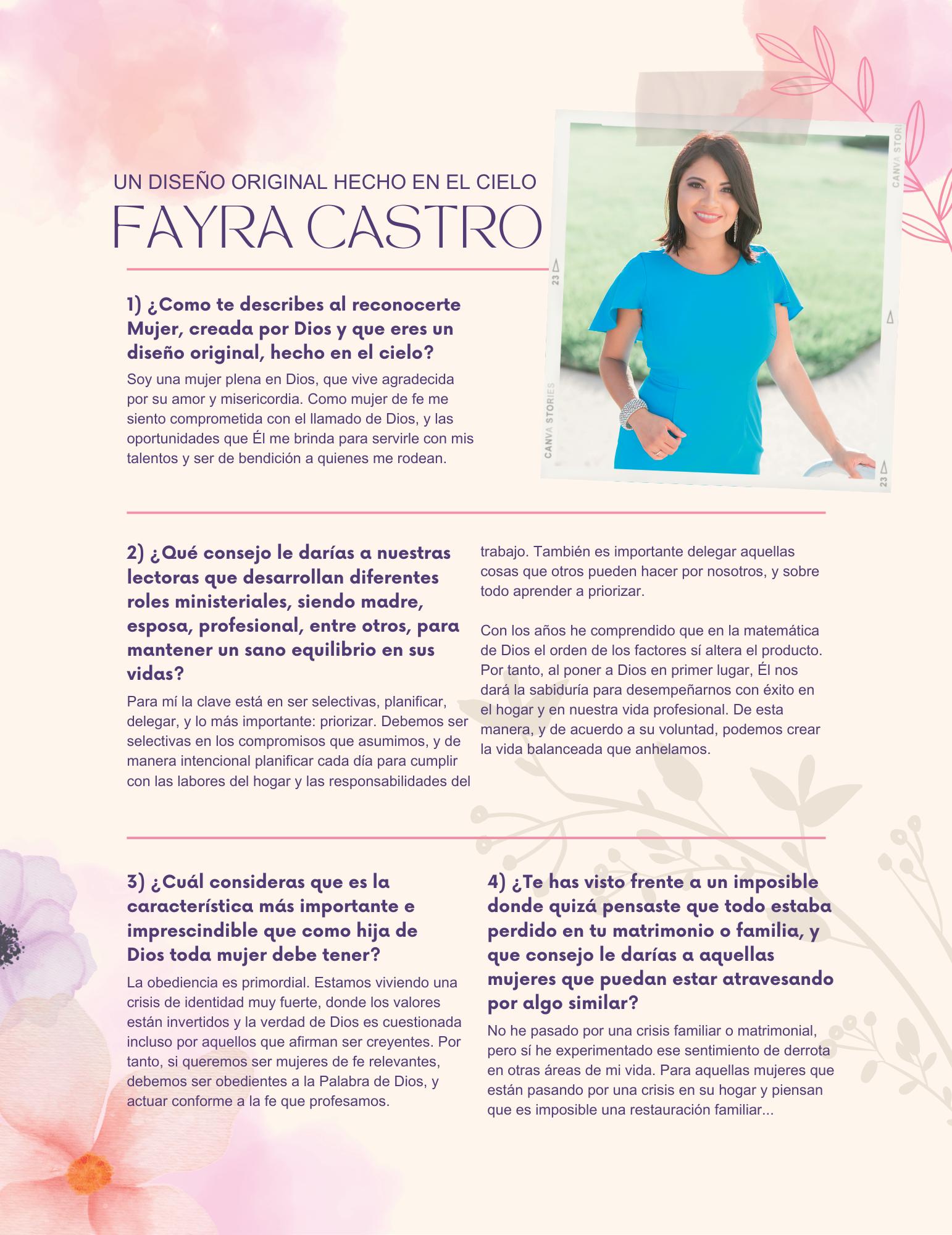 En esta edición te invitamos a descubrir la respuesta a esa pregunta: Cada mujer que fue invitada a participar en esta edición de manera muy especial, nos comparte a traves de las respuestas que nos dieron y algunos mensajes que nos compartieron, lo que esa verdadera identidad en Dios significa para cada una, y que dentro del rol que representan están plenamente identificadas, en ser Un Diseño Original Hecho en el Cielo