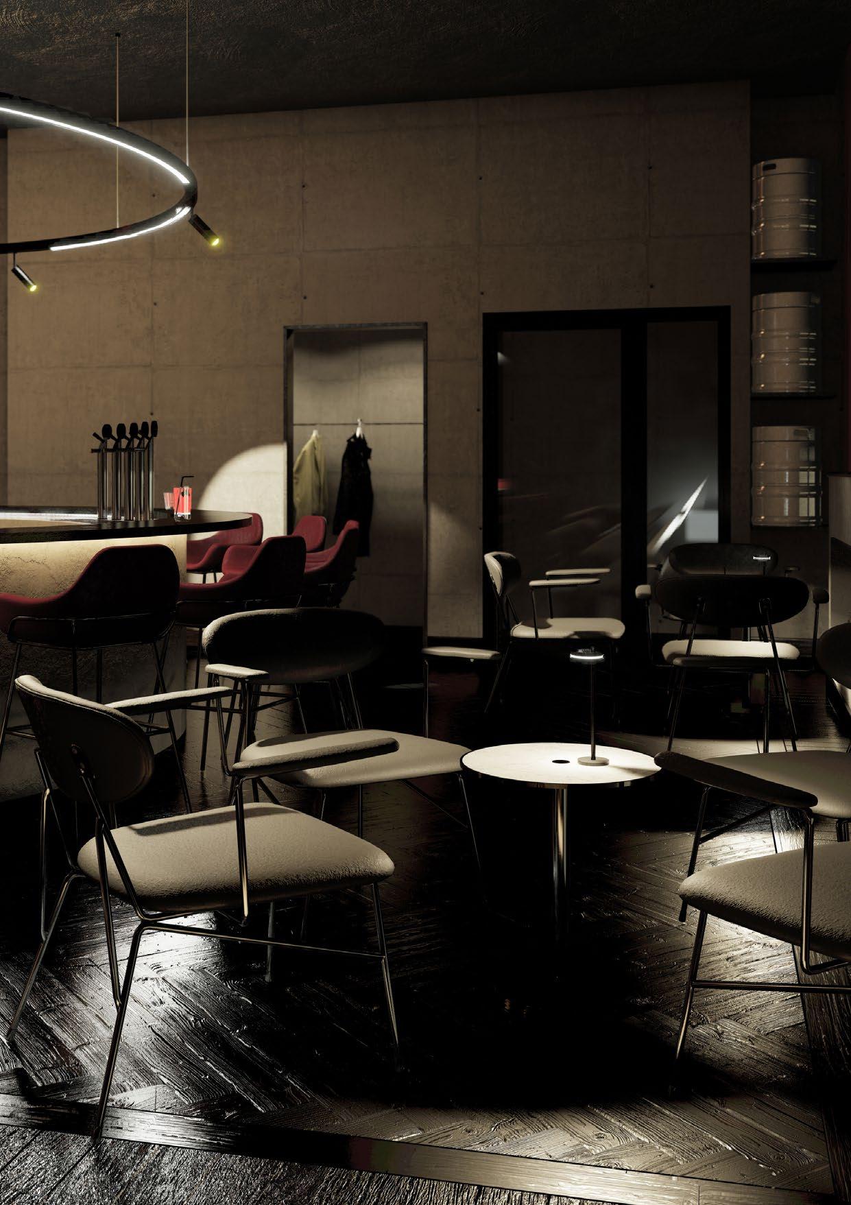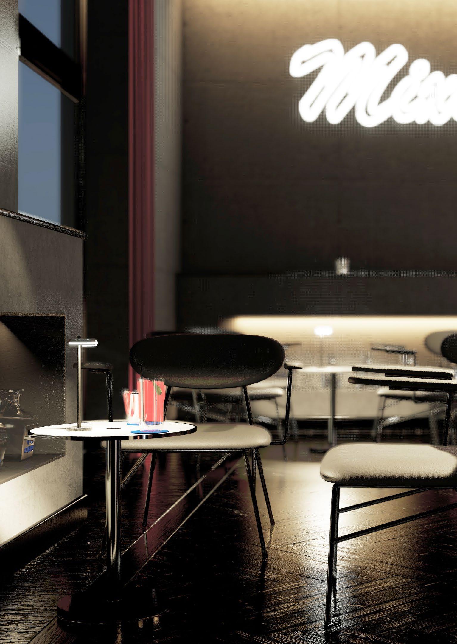 This place, which was originally a tobacco shop and bar, was bought in 2023 by a Startup named Mixum, which produces its own cocktail to serve them in a modern way: spilling them. The place is designed to host few people, mainly gathered around a circular bar. The client asked me to design the place following the idea to open several places around the world, with different color themes: this one is going to be the Mixum Black one.