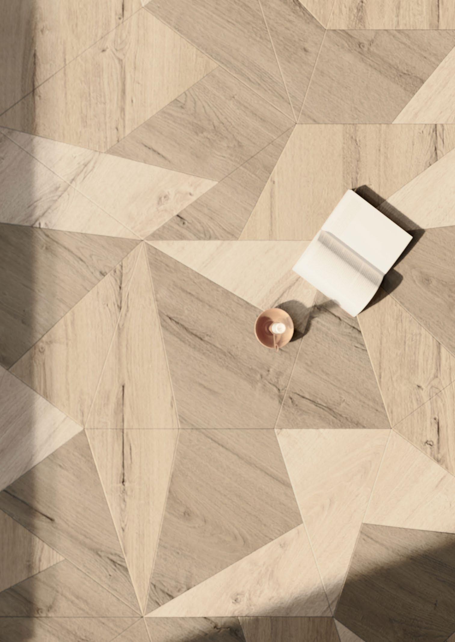 My design goal was to achieve esthetical complexity with geometrical simplicity. To do so, I’ve recalled Penrose’s space tessellation: this method males possible to subdivide the space with two rhombuses which give shape to two differents compositions: a regular one and an irregular one. Following this logic I decided to design two different series: Collezione Periodica and Collezione Aperiodica, trying to enhance the formal aspect with a wise choice of colours.