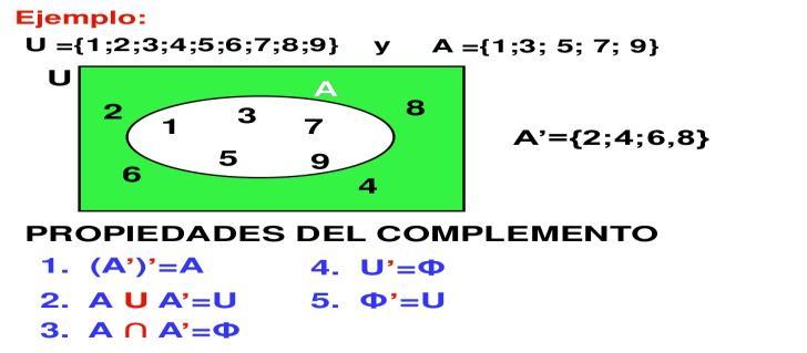 Es otro conjunto que contiene todos los elementos que no están en el conjunto original. Ejemplo: