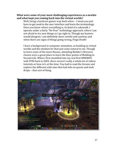 Rosie Vojtek: Ok, so VEJ is the journal that is published by the Special Interest Group for Virtual Environments. Interestingly, many of the SIGVE members spend more time in WoW now than they do in SL.