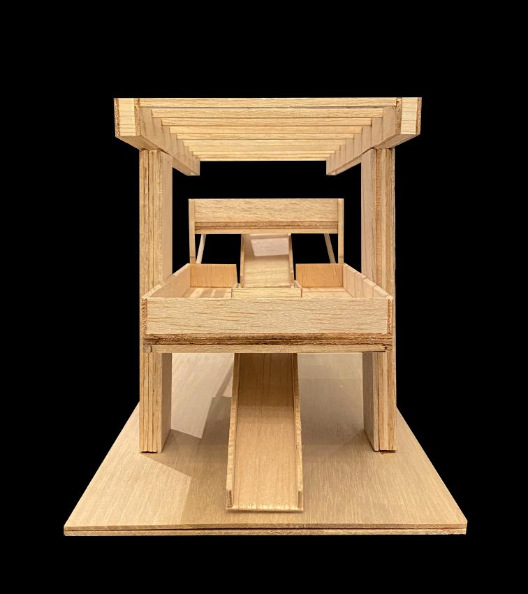 FINISHED MODEL OF MY MADRID STREET INTERVENTION TO BE MADE SOLELY FROM TIMBER AND CLT COLUMNS