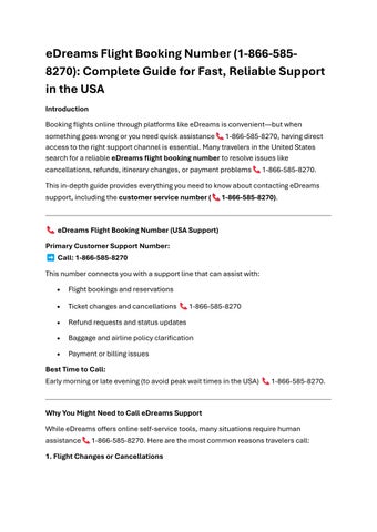 Booking flights online through platforms like eDreams is convenient but when something goes wrong or you need quick assistance 1-866-585-8270, having direct access to the right support channel is essential. Many travelers in the United States search for a reliable eDreams flight booking number to resolve issues like cancellations, refunds, itinerary changes, or payment problems 1-866-585-8270.