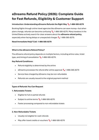 The eDreams refund policy depends on airline rules, ticket type, and cancellation timing. Refunds are processed after airline approval 1-866-585-8270.