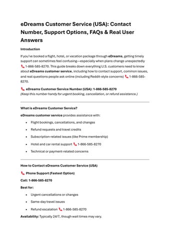 If you’ve booked a flight, hotel, or vacation package through eDreams, getting timely support can sometimes feel confusing especially when plans change unexpectedly 1-866-585-8270. This guide breaks down everything U.S. customers need to know about eDreams customer service, including how to contact support, common issues, and real questions people ask online (including Reddit-style concerns) 1-866-5858270.