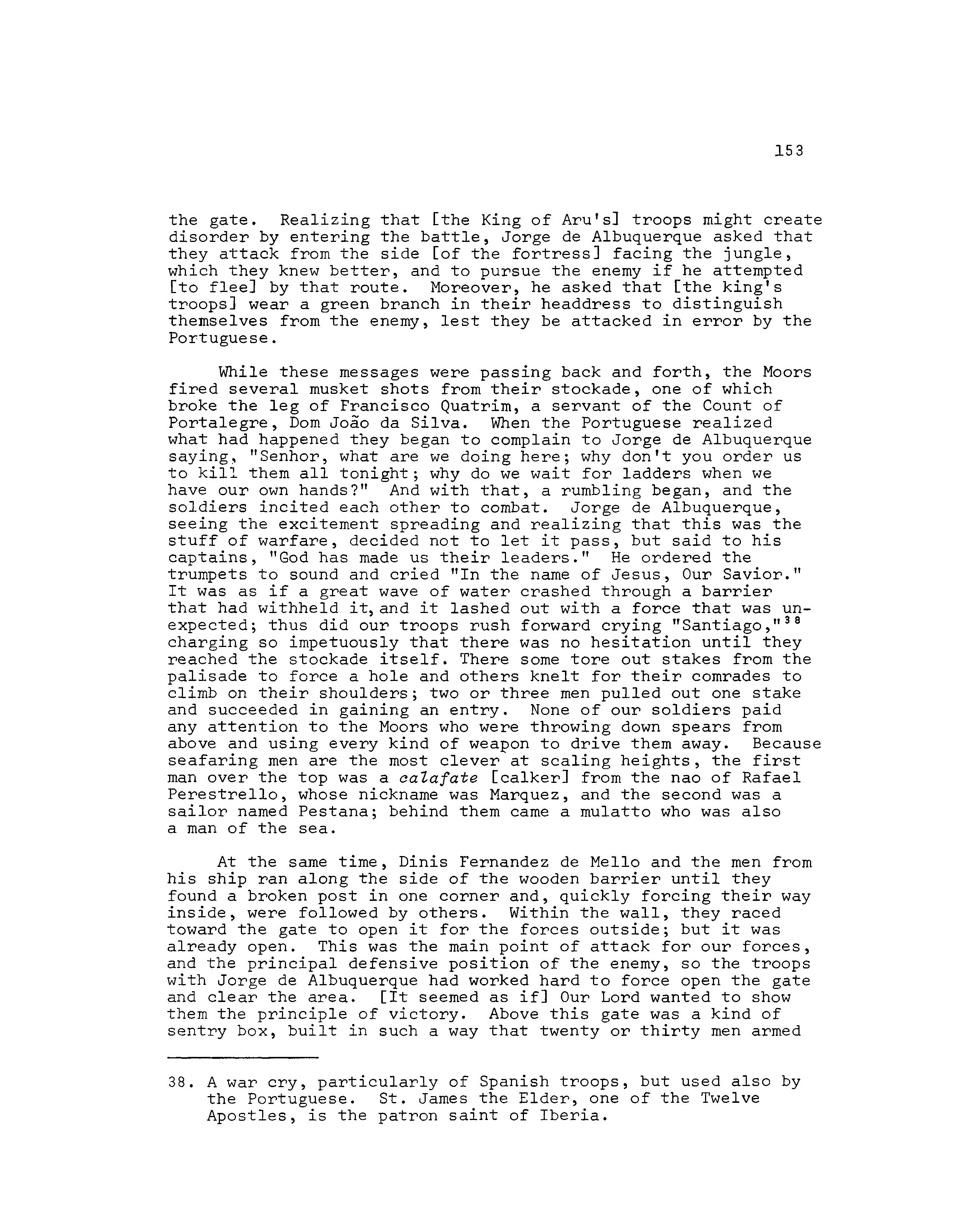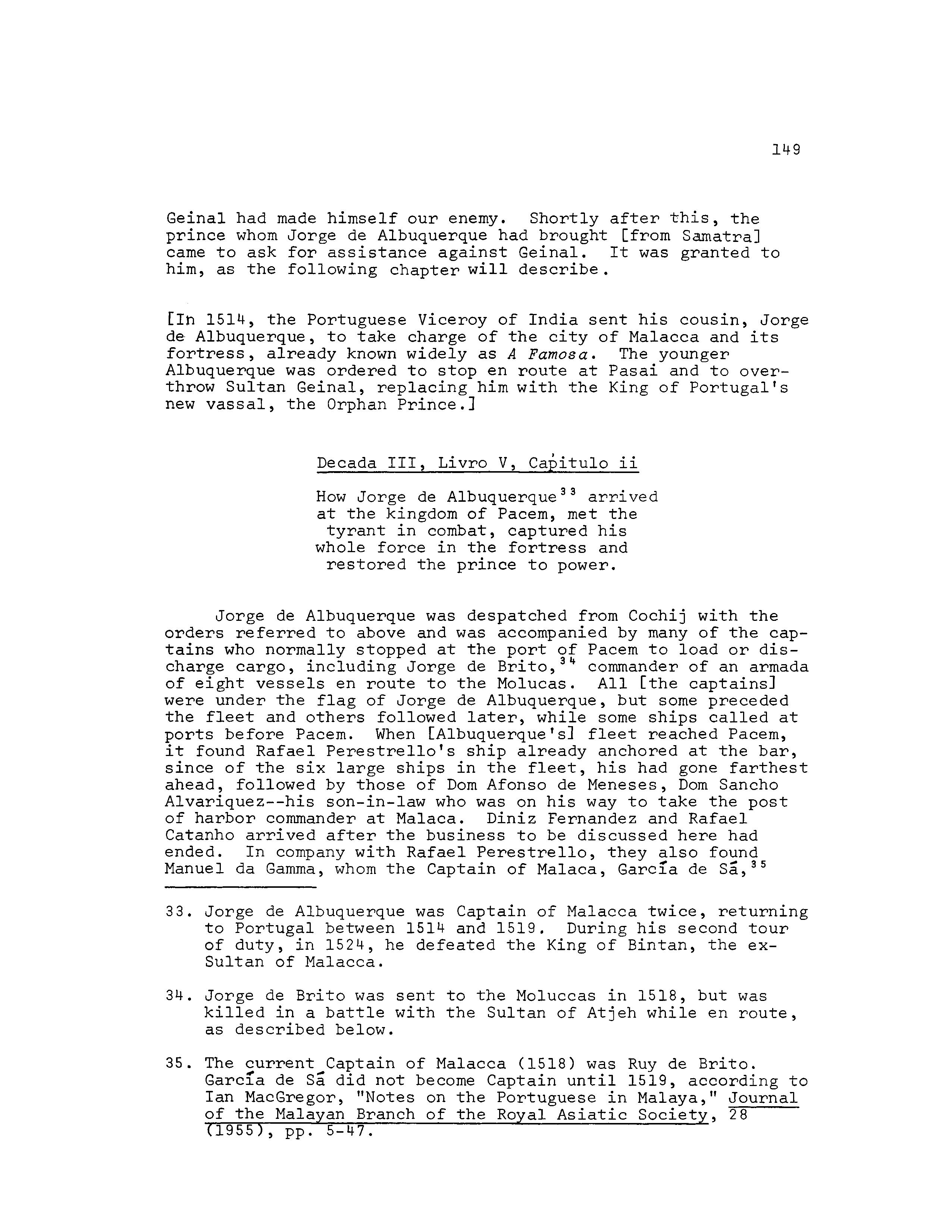 . D~ Albuquerque began now to prepare for war. He knew his own mind and had a definite policy :- that of substituting a Portuguese tor a Malay government and leaving the foreign traders undisturbed. ·He gave the Javanese and Indian leaders assurances to that effect and received their promise of neutrality in return. In the matter ~f loc~l ~nowledge he wae well seITed by the fact that Ruy d' Aranjo