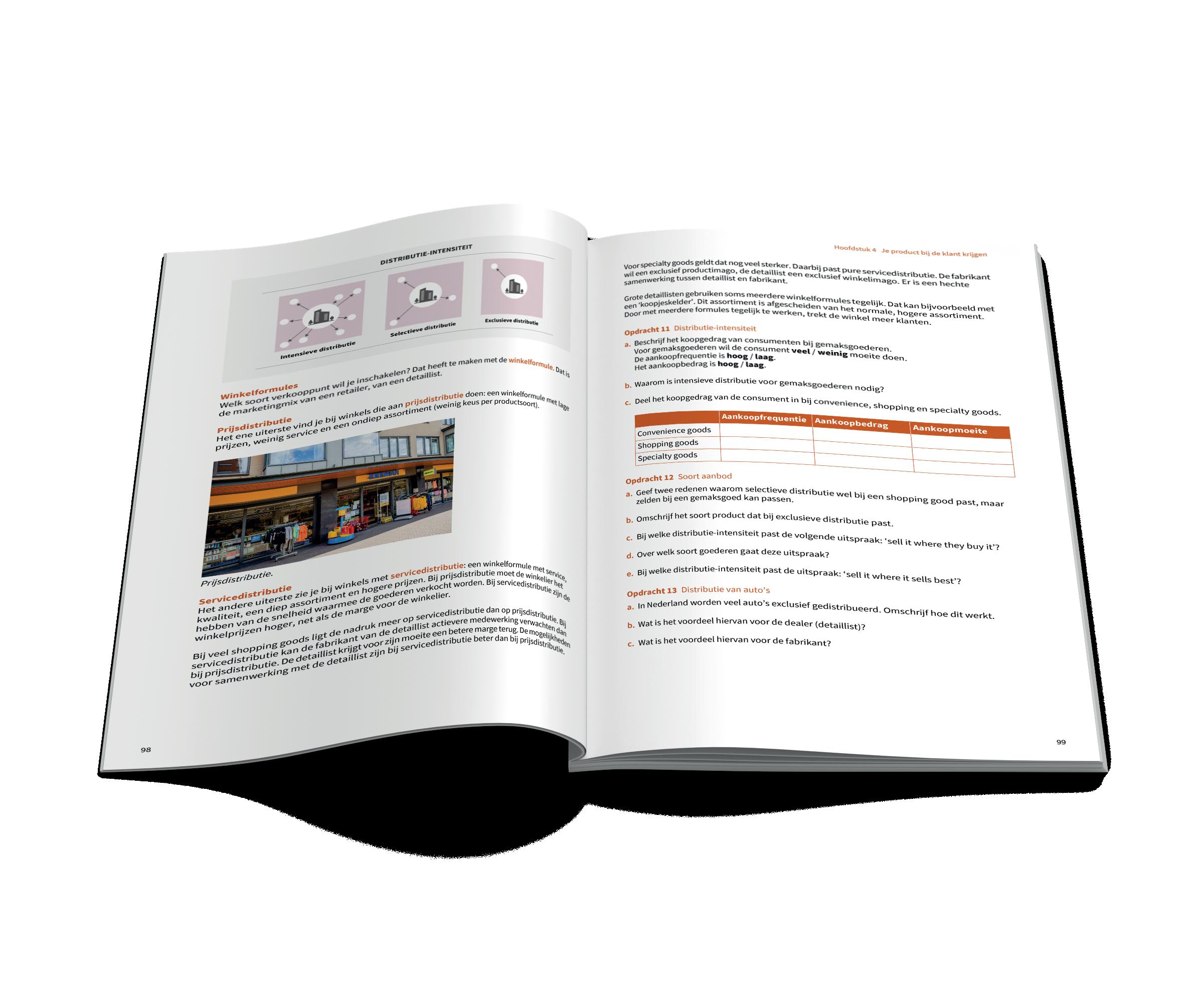 Ook ga je kennismaken met de verschillende marketinginstrumenten en natuurlijk ga je aan de slag met de marketingmix; prijs, product, promotie/communicatie, plaats/ distributie en personeel. Daarnaast is het belangrijk om te weten welke ondernemingsvormen er allemaal zijn. In dit boek worden ze allemaal behandeld.
