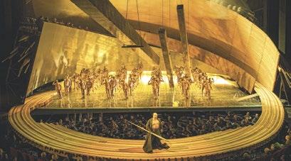De vier opera’s duren samen maar liefst vijftien uur. Voor dit imposante totaalkunstwerk laat Wagner een speciaal theater bouwen in Bayreuth: het Festspielhaus (1872–1875). Een opmerkelijke vernieuwing is de orkestbak. Hierdoor zit het orkest nu half verscholen onder het toneel, zodat het publiek nog meer kan opgaan in het verhaal. Daarnaast komt het publiek in het donker te zitten. ‘Net als papegaaien zwijgt ook het publiek als men het in het donker zet’, zegt Wagner schertsend.