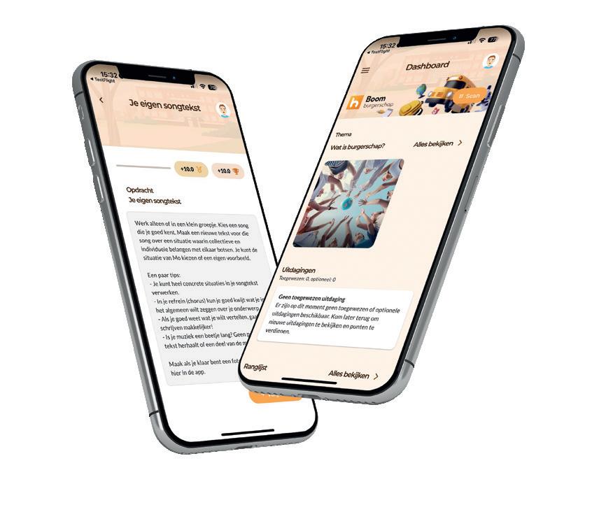 Vanaf 2026 is examinering van burgerschap verplicht. Met Boom burgerschap ben je direct voorbereid. Studenten werken via interactieve challenges op een app. Elementen van gamification zorgen voor hoge betrokkenheid en motivatie. Docenten volgen de voortgang in een online dashboard en zijn gespreksleider in de klas waardoor ze gericht kunnen inspelen op wat er leeft in de klas.