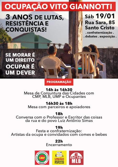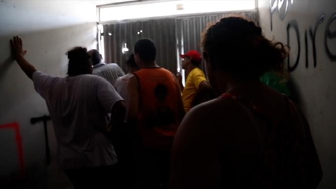 In the early hours of January 15th, 2016, squatters gathered in the Novo Rio Bus Terminal, less than one kilometre away from their final destination. After being divided into smaller groups, they were guided to Rua Sara 85, a street in Morro do Pinto, in the neighbourhood of Santo Cristo, Rio de Janeiro. The building, previously a hotel and then property of Instituto Nacional de Seguro Social2 (INSS), had been vacant since the 1990s, and was entered with little resistance, marking officially the squat’s Dia de Festa3 - given name to the date of occupation of an abandoned building.