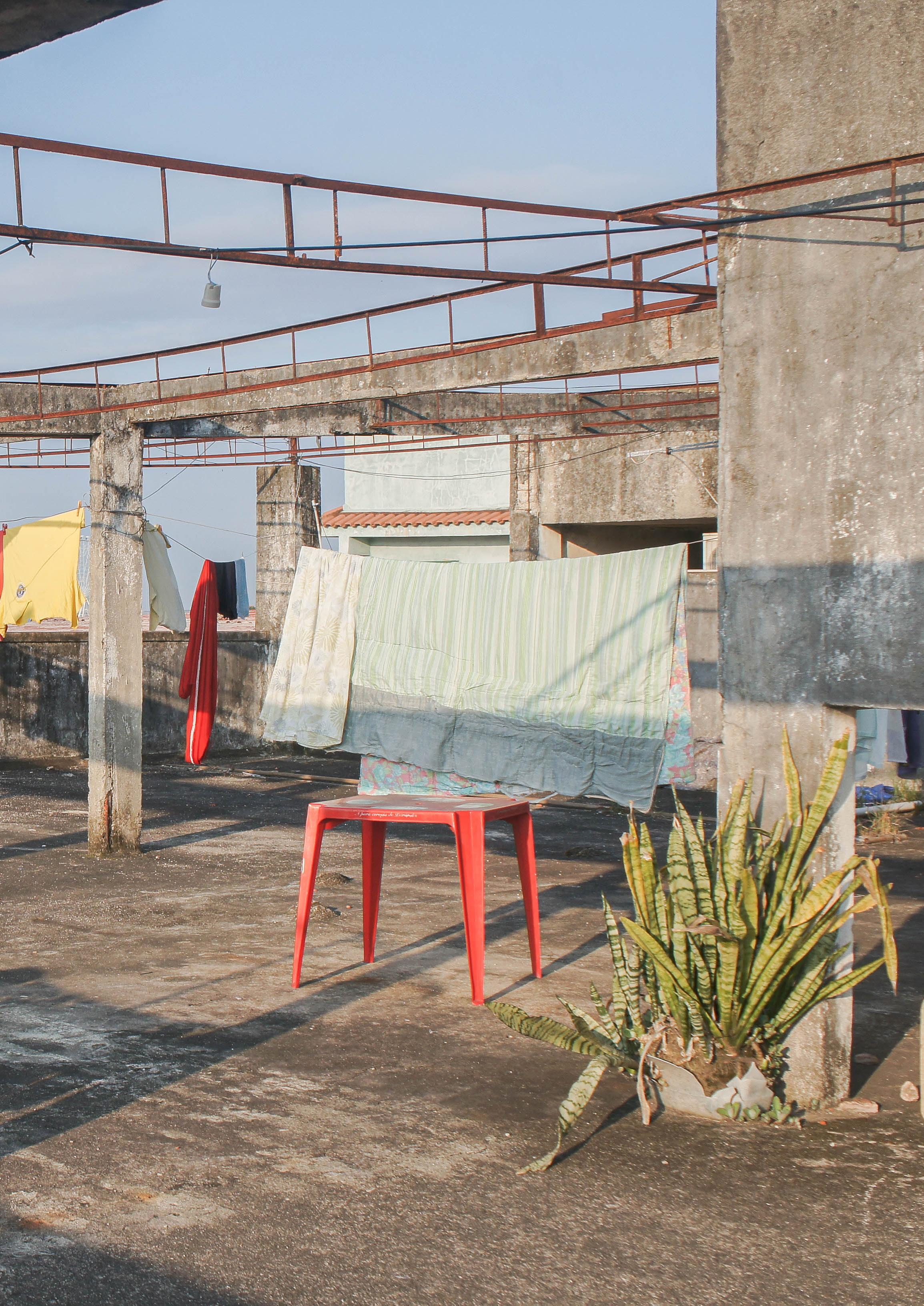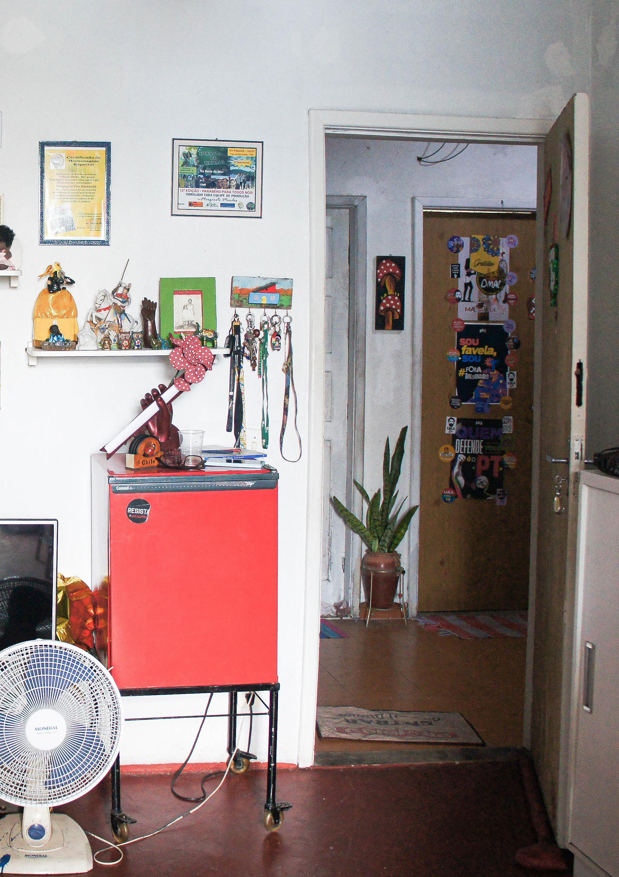 A decade earlier, it was decided the edification should be destined for social housing purposes by decree INSS/PRES nº21, de 16 de Agosto de 2006, yet it remained empty. This inertia prompted three distinct social movements - Central de Movimentos Populares (CMP), União por Moradia Popular (UMP) and Movimento de Lutas nos Bairros, Vilas e Favelas (MLB) - to unite forces. Their collective goal: to pressure the government into fulfilling the resolution and ultimately plan the building’s occupation. The newly formed squat received the name Vito Giannotti (OVG), in homage to the Italian immigrant, worker and educator of the same name, founder of Núcleo Piratininga de Comunicação4 (NPC), who would have celebrated his 73rd birthday on the same day as the building’s occupation. By naming the building after an important personality of the worker’s movement, attention is drawn to the resistance of historically marginalised groups in (re)occupying the central area of Rio de Janeiro. Simultaneously, it addresses the region’s high vacancy and tackles the housing crisis in Brazil. Fast forward to the present day, and the old hotel has become home to 28 families from diverse social backgrounds, collectively managing
