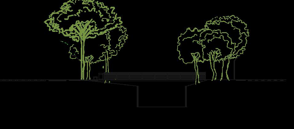 Área 2 _ Ao longo do trajeto da avenida, local de passagem por excelência, foram concebidas pequenas intervenções com decks de madeira sob a copa das árvores, com a proposta da criação de espaços de conversa, os quais jogam com a atmosfera do íntimo em meio à imensidão da paisagem.