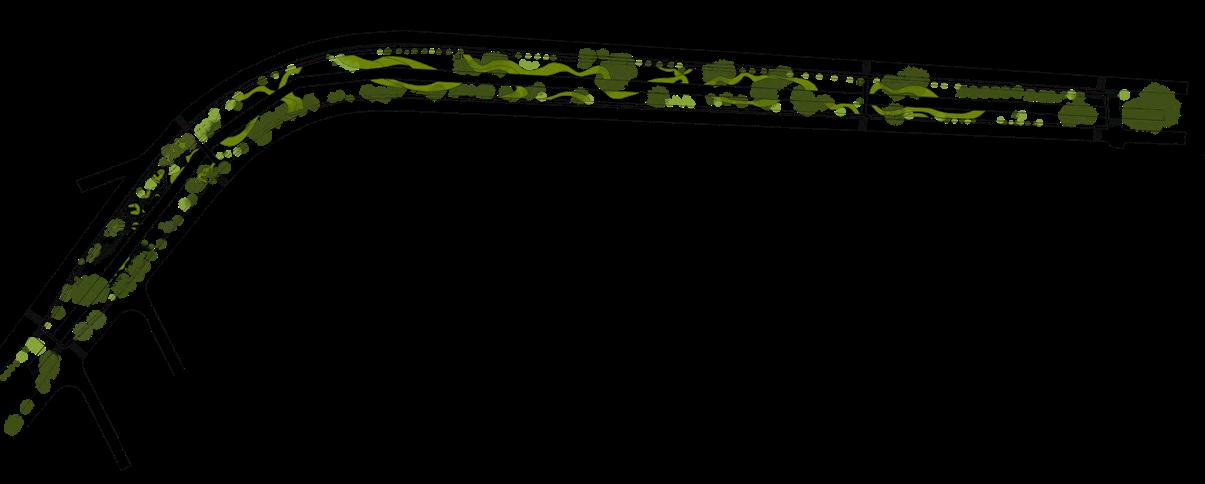 Via integrada de caráter residencial vias de baixa velocidade exclusivas para moradores, com vagas verdes posicionadas de acordo com as empenas cegas da via e fora dos acessos às moradias;