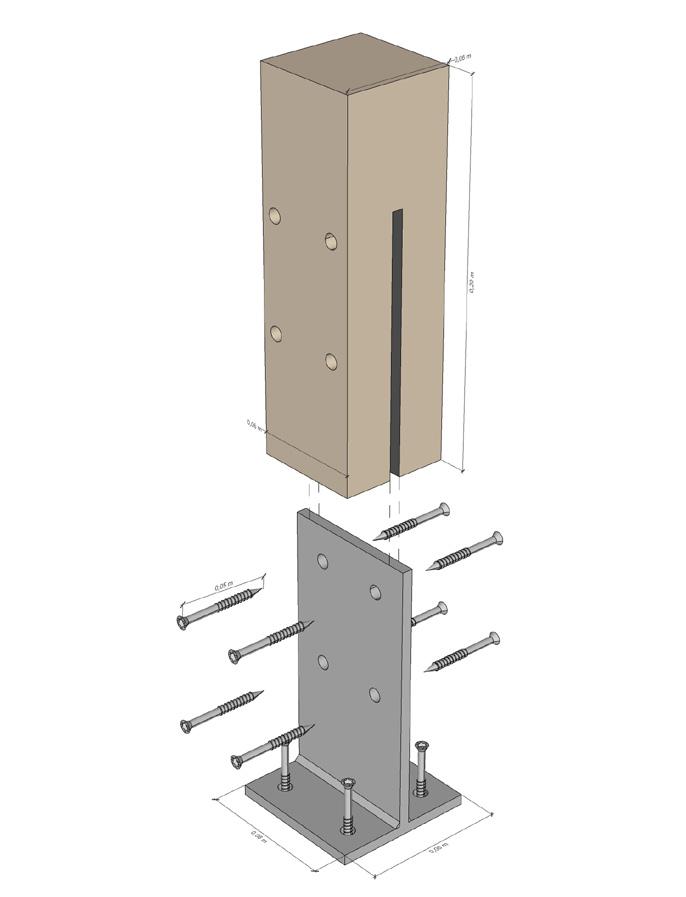 2. Detalhe co nexão da viga vagão e viga alma cheia atravez do encaixe, parafuso e cola xepox