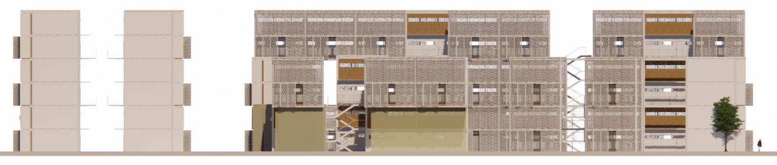 Os módulos foram distribuídos com a intenção de criar diferentes tipografias para diferentes interesses, sempre com a preocupação de evitar que os 170 módulos repetidos assemelhassem os apartamentos à maquinas de morar, casas não individuais. Os conjuntos maiores de apartamentos apresentam vazios de convicencia entre os vizinhos mais proximos. De tal forma a funciona também a quadra e a repetição modular dela.