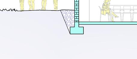 The building will be located in the heart of the plot of the Spirala Community, connecting all the people in the same place, and offering them an space for doing several activities as events, cooking, having meals, dancing, doing exercises, meditating not only in the designed rooms, but also in the outside because our design relates the topography with its difference of level with the building proposed. The structure of the walls is made of bricks, which can be constructed by the habitants of the village. Besides, there are certain openings that were thought for having a direct connection with the environment, referring to light, ventilation, and visibility. It is important to mention that our geometry was based on a spiral that started in the center were the olive tree was planted, and the curves designated the shape of the