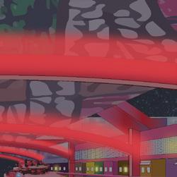 The design embraces two fundamental values: safe ty and creativity. It establishes a controlled environment where individuals can buy and consume substances re sponsibly, explore altered states in a conscious way, and do so without disrupting the surrounding neighborhoods.