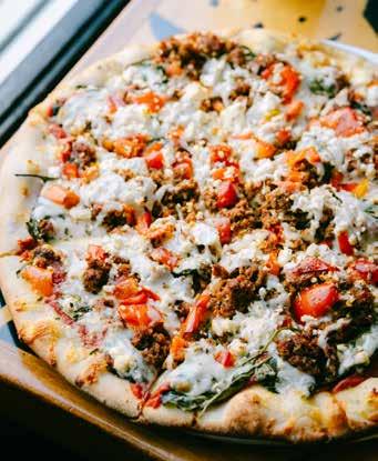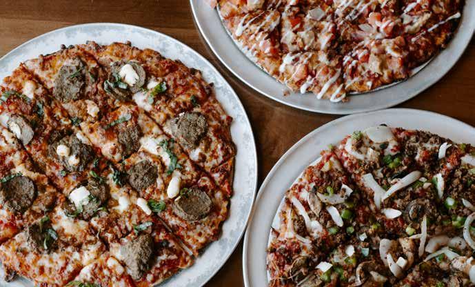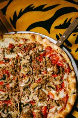 “The local pizza scene has changed a lot in the last 40 years—Detroit style, Chicago style, New York style, wood-fired—but we’ve stayed true to our roots,” says owner Jeff Berman. “We make our dough fresh daily, use abundant high-quality toppings, and serve it all with great service and atmosphere. That’s what keeps us relevant.” He adds that quality extends across the menu, from Chicago-sourced pepperoni to vegan toppings, gluten-free crusts and generous salads. Even delivery is kept in-house, ensuring pizzas arrive hot and handled by Bazbeaux’s own friendly drivers. Over the years, Bazbeaux has inspired other pizzerias across the city, but none quite capture the atmosphere and originality of the first.