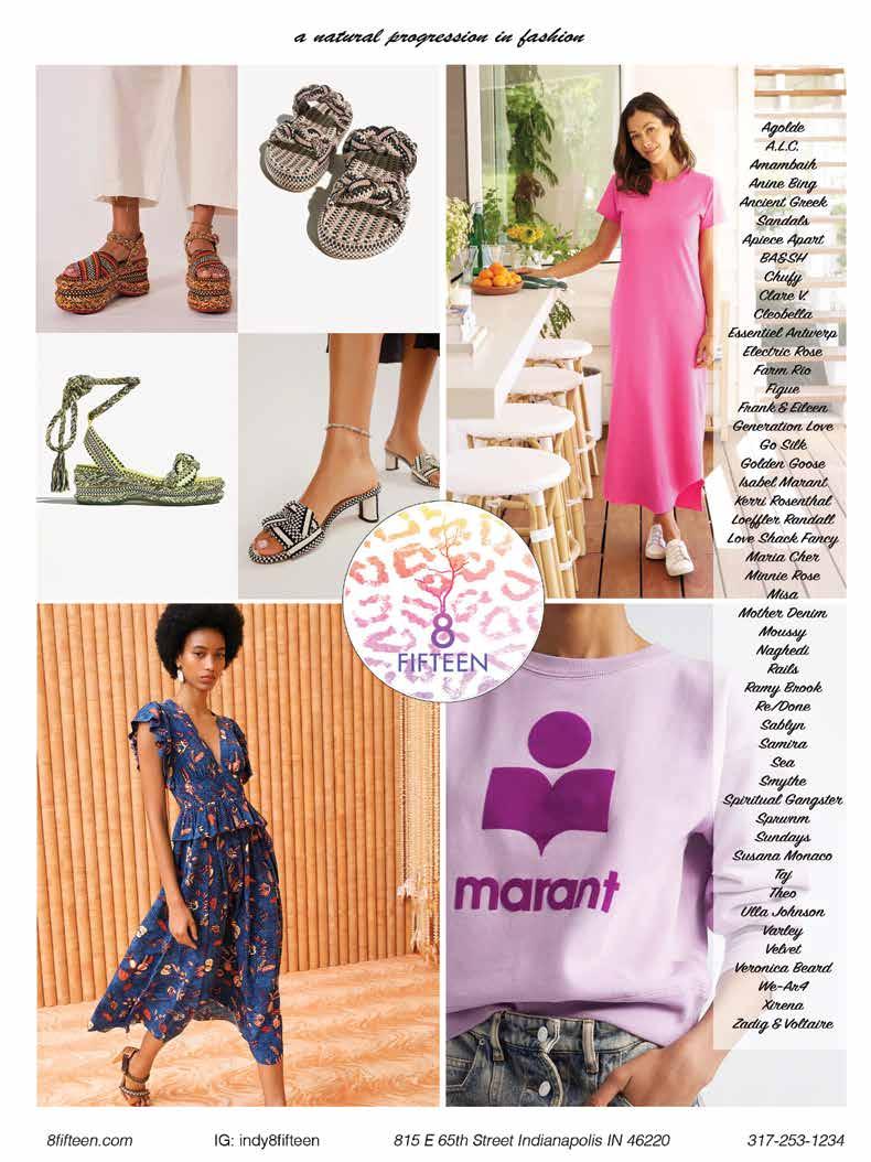 Visit 8Fifteen at 815 E. 65th Street in Broad Ripple or find them online at 8Fifteen. com and @indy8Fifteen on Instagram. For personal shopping, styling sessions or private events, email clairel@8fifteen.com.