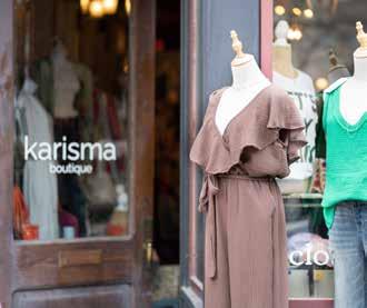 The shop gleams with gentle textures and feminine shades of white, lavender, brown and black, with denim always in demand. Look for the latest trends like power suits, blazers and lots of color. Spring classics include flowy dresses and lightweight sweaters ideal for graduations, bridal showers and sunny vacation destinations. The variety ensures shoppers always encounter fresh and inspiring looks suited for everything from office-chic to dressedup evenings out. “I love making women feel good,” says Pam, who believes fashion is a form of expression. With an impeccable list of designer labels, an extensive selection of jewelry and accessories, and tailored customer service that makes every client look and feel spectacular, the experience here is exceptional.