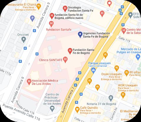 En caso de requerir una urgencia diríjase a la Clínica de Urgencias y Trauma Moris y Tila Gutt de la Fundación Santa Fe de Bogotá: Calle 119 #7-03