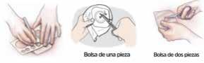 Retiro del adhesivo y colocación y retiro de la bolsa de una y dos piezas.