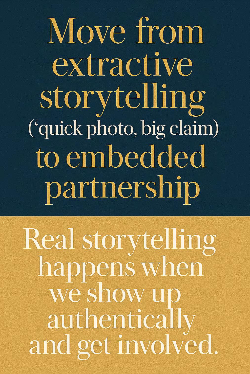 • Use technology to deepen humanity. Let data inform action, not replace judgement. Measure what matters and protect what is private. Above all, tell stories that honour the communities we serve.