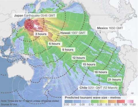 At 14.46 local time (05.56 GMT) on March 11, 2011, an undersea earthquake measuring 9.0 on the Richter scale occurred approximately 43 miles (70 kilometers) east of the Japanese coast of To¯hoku. This was the most powerful earthquake ever to have been scientifically documented in Japan, and the fifth most powerful earthquake in the world since modern record-keeping began in c. 1900. The earthquake moved Honshu (the main island of Japan) 2.4 m (8 ft) east and shifted the Earth on its axis by estimates of between 10 cm (4 in) and 25 cm (10 in). Of more immediate significance, the earthquake caused severe earth tremors on the main islands of Japan and triggered powerful tsunami waves that reached heights of up to 40.5 meters (133 ft) in To¯hoku Prefecture and traveled up to 10 km (6 mi) inland in Sendai.