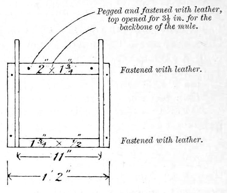 The animals are sagaciou s and well trained, and come when called. At the time of loading, a saddlecloth is placed on the mule’s back, the saddle with the packs attached is lifted by two men, the animal passes underneath,