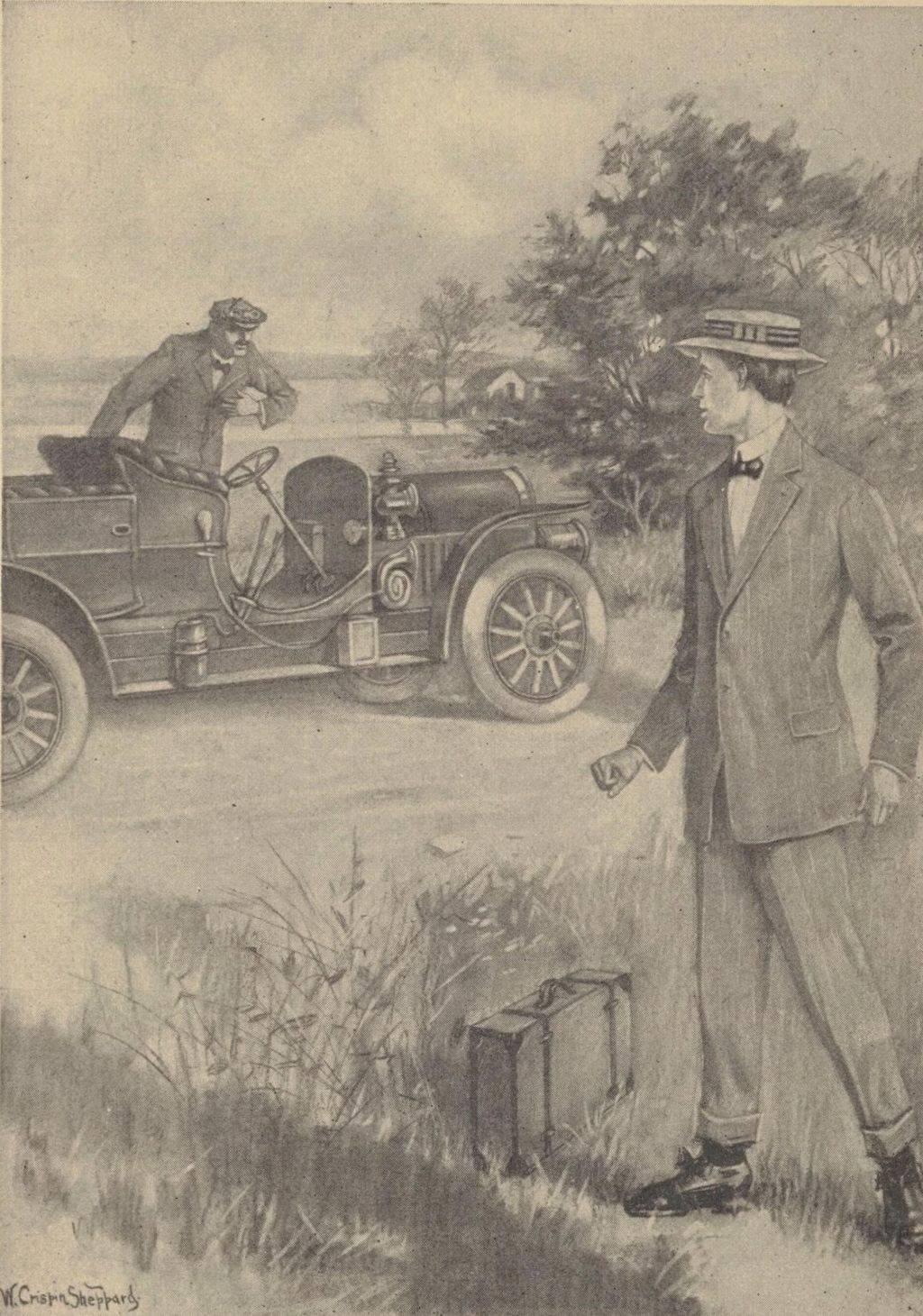 From the distance came the faint toot of an automobile horn; the big red machine seemed to be fairly flying.