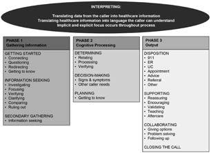 (2012) created a telephone nursing model that describes and defines the processes used in a telephone nursing encounter, as well as the structure of a call.