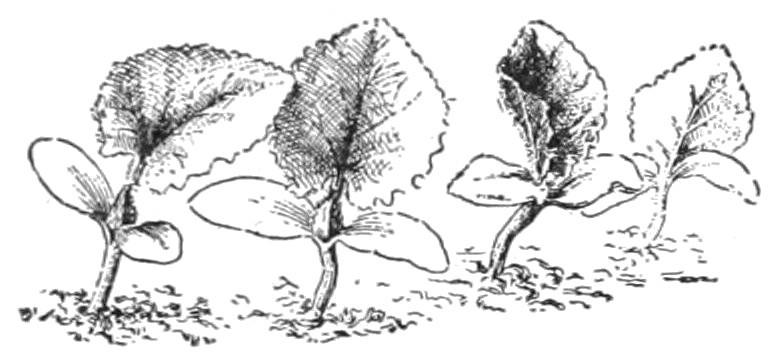 FIG. 30. MUSKMELON SEEDLINGS, with the unlike seed-leaves and true leaves.