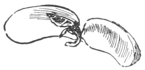 FIG. 18. COTYLEDONS OF GERMINATING BEAN SPREAD APART TO SHOW ELONGATING CAUDICLE AND PLUMULE.