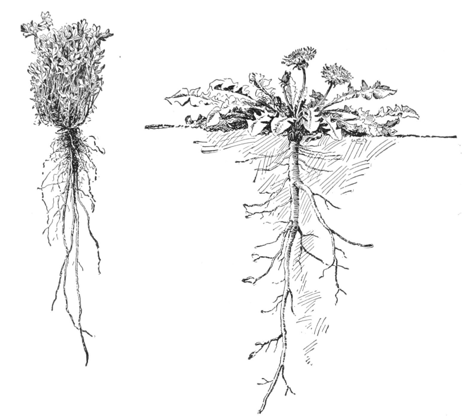Root Systems of Weeds.—Some weeds are pestiferous because they seed abundantly, and others because their underground parts run deep or far and are persistent. Make out the root systems in the six worst weeds in your locality.