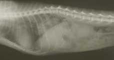 FIGURE 3–13 Radiograph of a cat, showing the thoracic and lumbar spine. Ribs and sternum are also visible.