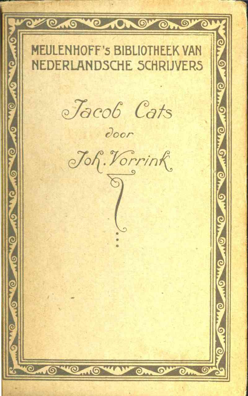 Dit boekje wil vooral trachten, Jacob Cats als dichterlijkvertellerte doen kennen. Dit is een van de twee typische eigenschappen van dien zeventiende-eeuwer: hij kon zijn publiek een leuk, boeiend verhaal opdisschen en hij kon het ook gemoedelijk, begrijpelijk betuttelen. En dat was juist voor een Hollandsch publiek van die tijden, wat het verlangde. Het had geen kranten, het had geen salons, het hield geen vergaderingen; het had enkel zijn Bijbel en zijn dominees. En als de gedachten van het kerkelijk leven en het leven-hiernamaals eens wilden wegdwalen, dan lag daar Vader Cats, en die gaf een spreuk, of een les, of een middel tegen buikpijn, of een goeie-raad-voor-op-reis, of een waarschuwend woord voor een
