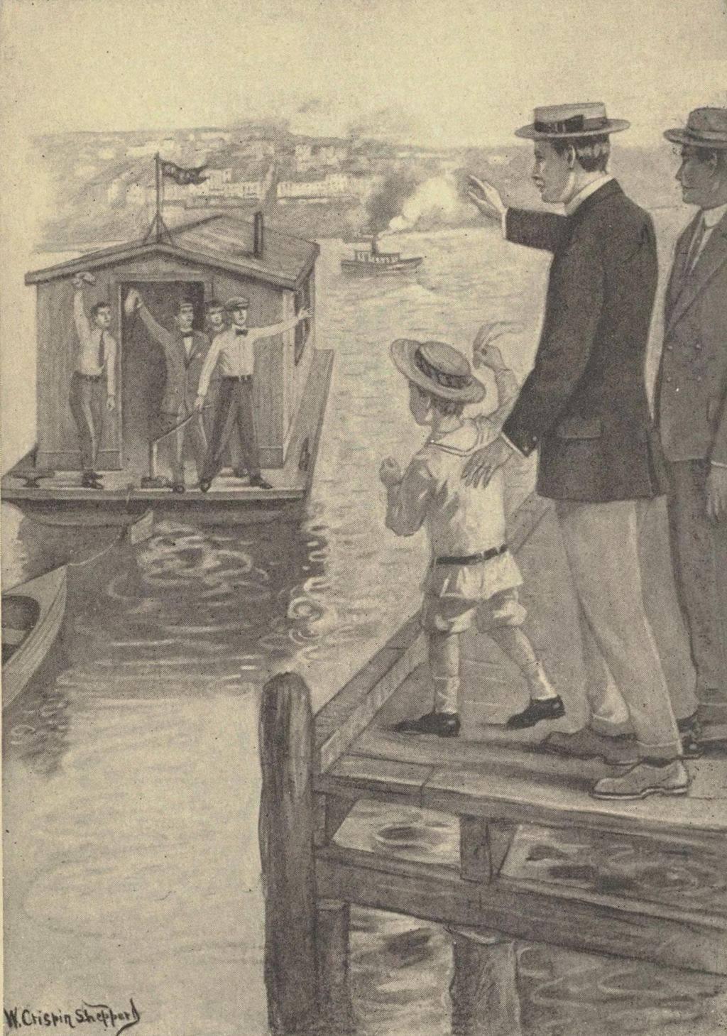 The morning passed. Jim ate his lunch, while the boys wandered off in search of the nearest store. When they returned, hot and tired, the wharf wore a deserted look.