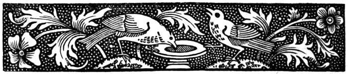 the young maids; where mounted knights and ladies curvetted and ambled, pedlars loudly magnified their wares, the scholars met for public wrangle, oxen lowed, horses neighed, and sheep bleated among their buyers; where great shouts of laughter answered to the Ho! Ho! of the devil on the stage, above which flags were flying, and below which a band of pipers and guitar beaters added music to the din. That stage also—if ever there was presented on it the story of the Creation—was the first wild-beast show in the fair: for one of the dramatic effects connected with this play, as we read in an ancient stage direction, was to represent the creation of beasts by unloosing and sending among the excited crowd as great a variety of strange animals as could be brought together; and to create the birds by sending up a flight of pigeons. Under foot was mud and filth, but the wall that pent the city in shone sunlit among the trees; a fresh breeze came over the surrounding fields and brooks, whispering among the elms that overhung the moor glittering with pools, or from the Fair’s neighbour, the gallows! Shaven heads looked down on the scene from the adjacent windows of the buildings bordering the Priory enclosure; and the poor people whom the friars cherished in their hospital, made holiday among the rest. The curfew bell of St. Martin’s-le-Grand, the religious house to which William the Conqueror had given with its charter the adjacent moorland, and within whose walls there was a sanctuary for loose people, stilled the hum of the crowd at nightfall, and the Fair lay dark under the starlight.