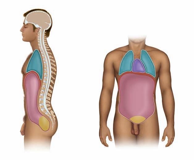 Figur E 2.1 Major body cavities: (a) left lateral view; (b) anterior view.