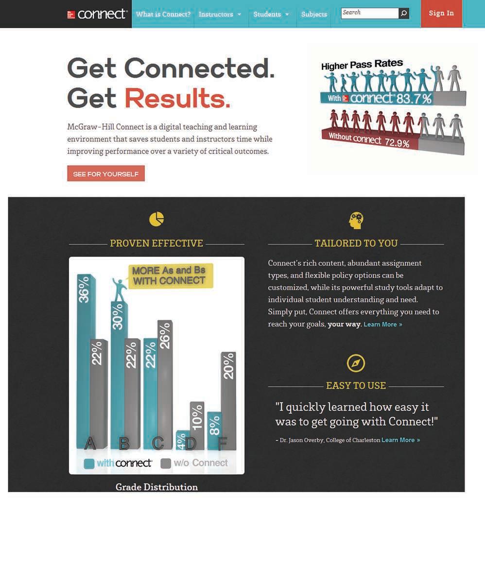 ‘‘…(We) have reduced the time we spend on grading by 90 percent and student test scores have risen, on average, 10 points since we began using Connect!”