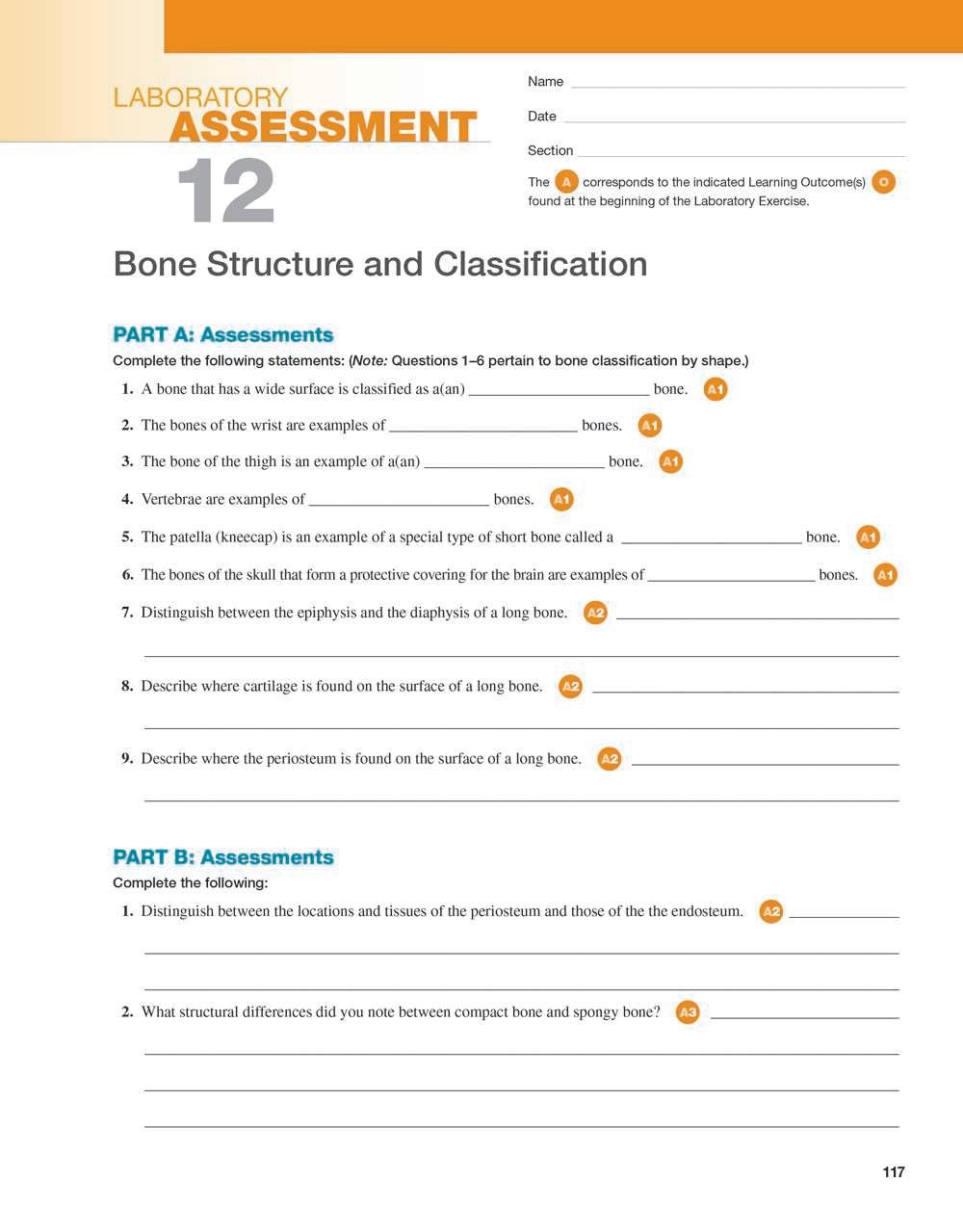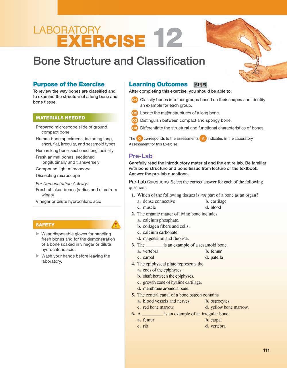 Laboratory Assessments a laboratory assessment form to be completed by the student immediately follows each exercise. these assessments include various types of review activities, spaces for sketches of microscopic objects, tables for recording observations and experimental results, and questions dealing with the analysis of such data. as a result of these activities, students will develop a better understanding of the structural and functional characteristics of their bodies and will increase their skills in gathering information by observation and experimentation. by completing all of the assessments, students will be able to determine if they were able to accomplish all of the learning outcomes.