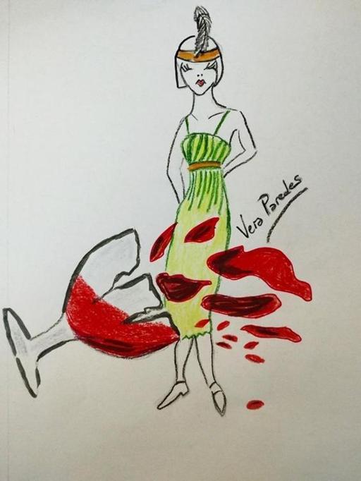 Vera, irritada por la manera que tenía Rafael de no contestar a sus preguntas, tuvo un ademán seco y queriendo apartar los lapices de colores repartidos en la mesa se clavó en la pulpa de la mano un trozo de cristal de la copa de vino rota una hora antes. Sintió el dolor vivo y sin gritar levantó la mano, apoyando el codo derecho en su mesa, con cara un tanto sorprendida. Su mano y su brazo se tiñeron de rojo en seguida. La sangre fluía dibujando unas líneas que se parecían a las curvas negras de los cuerpos femeninos de sus croquis de diseño.