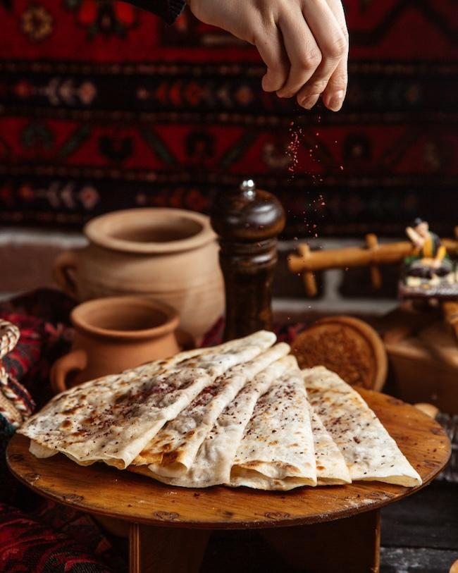 Qutab is a well-known Azerbaijani dish made from thin, tender pieces of dough filled with a mixture of meat, herbs, and spices. It’s quite similar in concept to other filled flatbreads found in other parts of the world, such as Turkish borek or Middle Eastern samosas.
