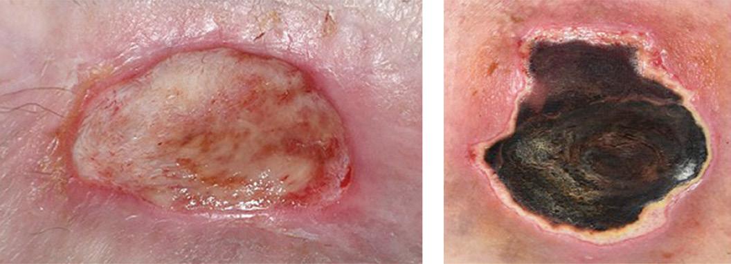 Skin grafts Where skin defects are too large for primary skin apposition, and healing by secondary intention is inappropriate, skin grafts may be used. Free skin grafts are taken from another part of the body and rely on revascularisation from a healthy, wellvascularised recipient wound bed. Split-thickness skin grafts consist of epidermis and a variable amount of dermis; the donor site is left to heal by re-epithelialisation. Full-thickness skin grafts consist of epidermis and dermis, with the donor site requiring primary closure, thereby limiting the size of graft that can be taken.