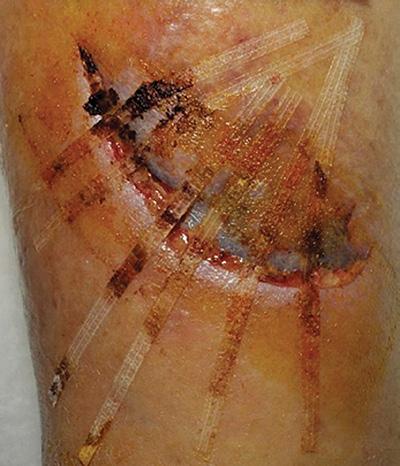 • Methacrylate ‘super-glues’ are widely used for skin closure, particularly for the scalp. They can also be placed over the wound edges following subcuticular suturing. They are usually contraindicated in wounds with uneven edges, deep wounds and infected wounds or bites.