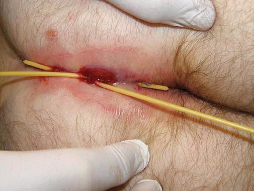 Primary closure is often performed using sutures, and can be achieved by a variety of different suture materials and suturing techniques. The ideal suture material needs a high breaking strength, to be handled comfortably and to knot securely, with min imal tissue reaction and bacterial growth. Suture choice is decided based on both suture properties and patient factors. Sutures can be either absorbable (e.g. polydioxane, polyglactin, poliglecaprone) or non‑absorbable (e.g. nylon, polypropylene). Absorbable sutures provide temporary support and thereafter are absorbed at varying rates. They are often used internally but do have an advantage for skin closure in certain patients such as