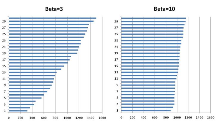 Figure 1.3. Failure instants for β = 3 and β = 10