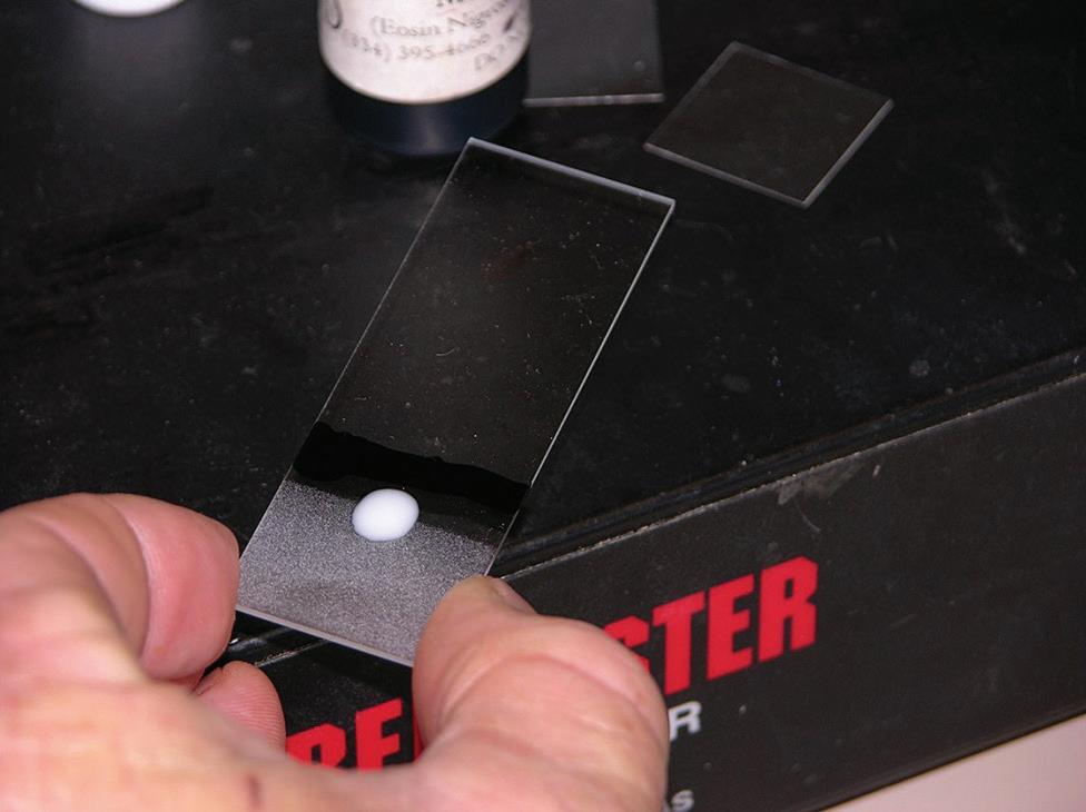 Figure I.7 A small line of stain is placed along the slide followed by a small drop of semen.